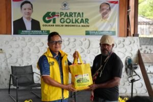 MANOKWARI,JAGATPAPUA.com–Sebagai bentuk ungkapan Syukur 61 tahun usia Partai Golkar, Anggota DPR Papua Barat, Ahmad Kuddus menyerahkan Bantuan berupa Bahan Pokok (Bapok) kepada masyarakat di Manokwari.