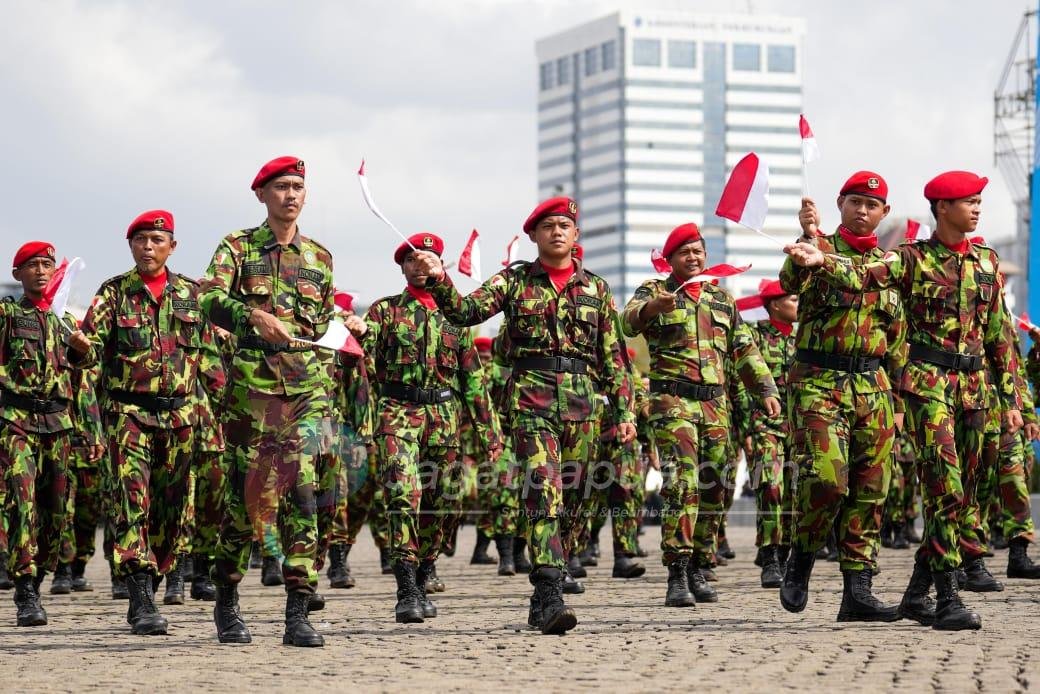 Di barisan akhir, ada kelompok petani ikut dalam defile hari ini. Mereka membawa jagung di tangannya sebagai bukti ketahanan pangan yang sudah dihadirkan.