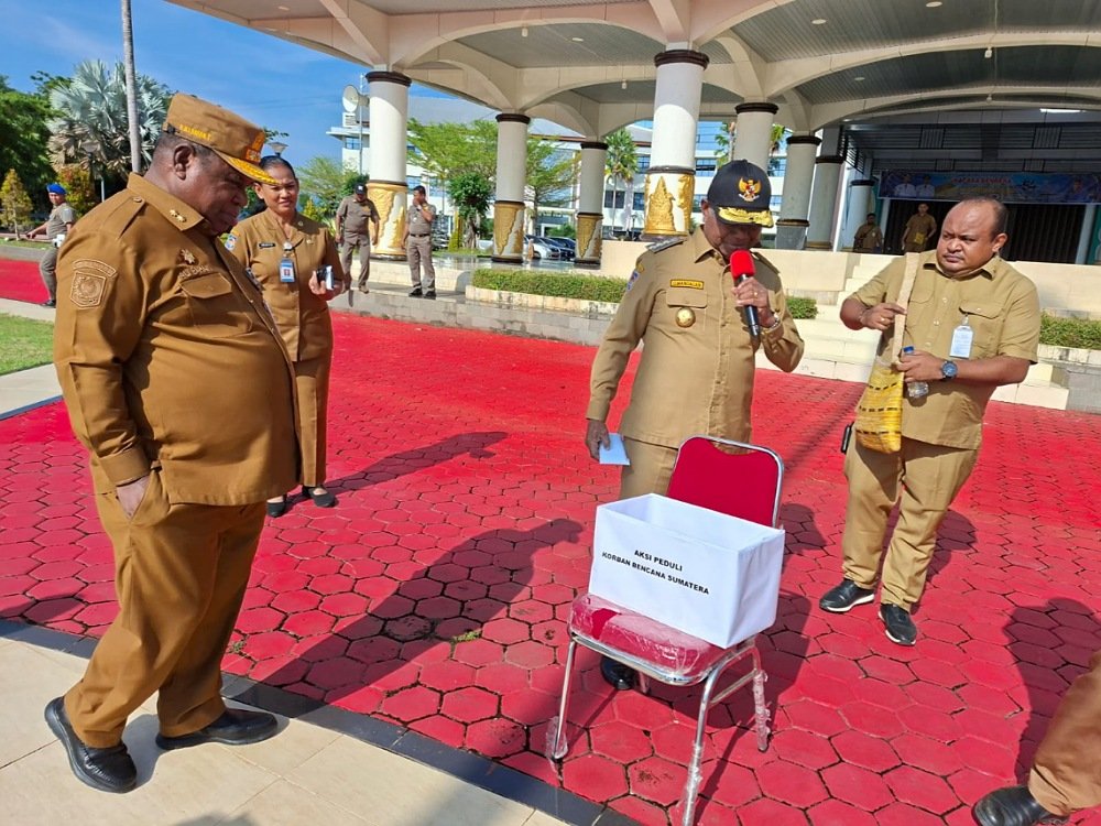 Aksi Donasi itu digelar usai Apel Gabungan ASN, Senin (8/12/2025) di Lapangan Upacara Kantor Gubernur, di Arfai. Dipimpin Langsung oleh Gubernur Papua Barat, Dominggus Mandacan, Wakil Gubernur, dan Sekda diikuti oleh pimpinan OPD dan ASN.