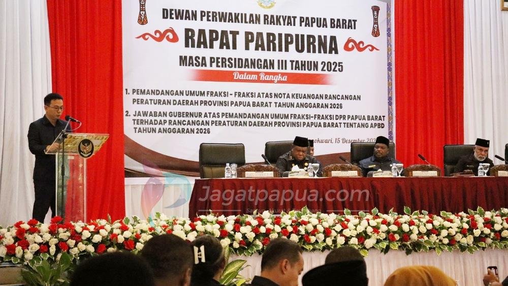 Hal itu disampaikan Juru Bicara Fraksi Partai Golkar DPR Papua Barat, Philip Hendrich dalam Rapat Paripurna tentang Pemandangan Umum Fraksi-fraksi DPR, Senin (15/12/2025). Dalam Dokumen KUA PPAS tercatat sebesar Rp.4,103.376.924.864,00 triliun, sedangkan di dalam RAPBD 2026 tercatat sebesar Rp4.408.376.924.864,00 triliun.