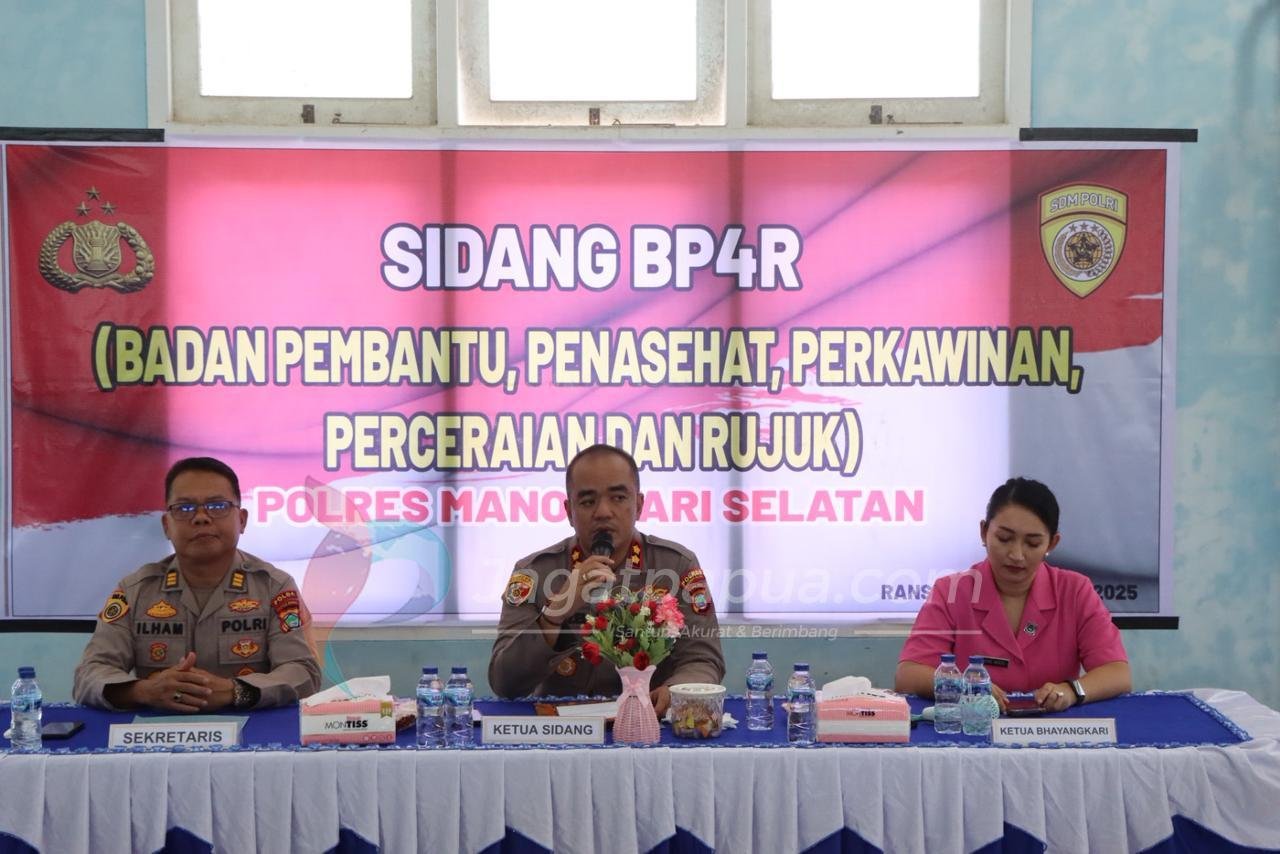 RANSIKI, JAGATPAPUA.com – Sebanyak 21 pasangan Personil Polres Manokwari selatan mengikuti sidang Badan Pembantu, Penasehat, Perkawinan, Perceraian, dan Rujuk (BP4R) yang di laksanakan di Gedung KNPI Kabupaten Manokwari Selatan, (Selasa,09 September 2025).