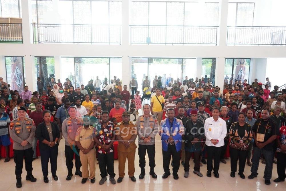 Setelah menerima laporan dari Kapolres dan Perwira Piket Jaga, Kapolda didampingi Ketua MRP dan Bupati Teluk Bintuni serta rombongan pejabat utama Polda Papua Barat menyapa dan berjabat tangan dengan seluruh Anggota Mapolres Teluk Bintuni dan dilanjutkan dengan pemberian tali asih kepada pengungsi di Distrik Moskona.