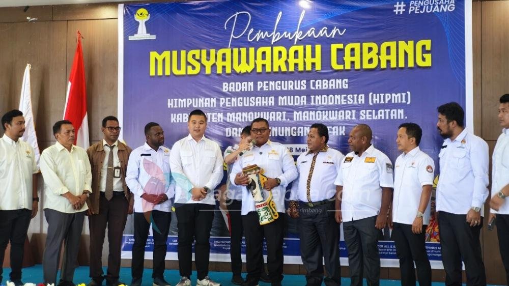 MANOKWARI,JAGATPAPUA.com— Wakil Bupati Kabupaten Manokwari, H.Mugiyono membuka Musyawarah Cabang HIPMI Kabupaten Manokwari, Pegunungan Arfak dan Manokwari Selatan, pada Rabu (28/5/2025) di aula KNPI Papua Barat.