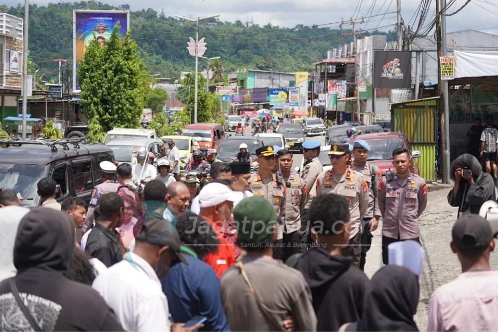 Wakapolda Papua Barat, Brigjen Pol. Drs. Yosi Muhamartha, turun langsung memantau jalannya aksi dan mendengarkan aspirasi mahasiswa bersama Ketua DPR Papua Barat, Orgenes Wonggor, serta anggota DPR Papua Barat lainnya.
