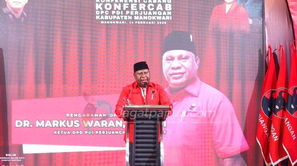 Markus Waran menyampaikan apresiasi kepada pengurus DPC PDI Perjuangan Manokwari yang telah menyelesaikan masa jabatan. Ia menegaskan bahwa sesuai anggaran dasar dan anggaran rumah tangga partai, kepengurusan selanjutnya akan diambil alih melalui mekanisme organisasi yang berlaku.