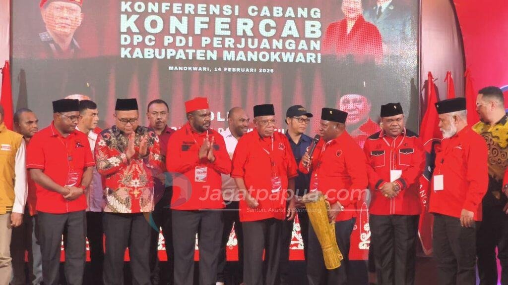 MANOKWARI,JAGATPAPUA.com – Ketua DPD PDI Perjuangan Papua Barat, Markus Waran, secara resmi membuka kegiatan Konferensi Cabang (Konfercab) Dewan Pimpinan Cabang (DPC) PDI Perjuangan Kabupaten Manokwari, yang berlangsung di Swiss-Belhotel Manokwari, Sabtu (14/2/2026).