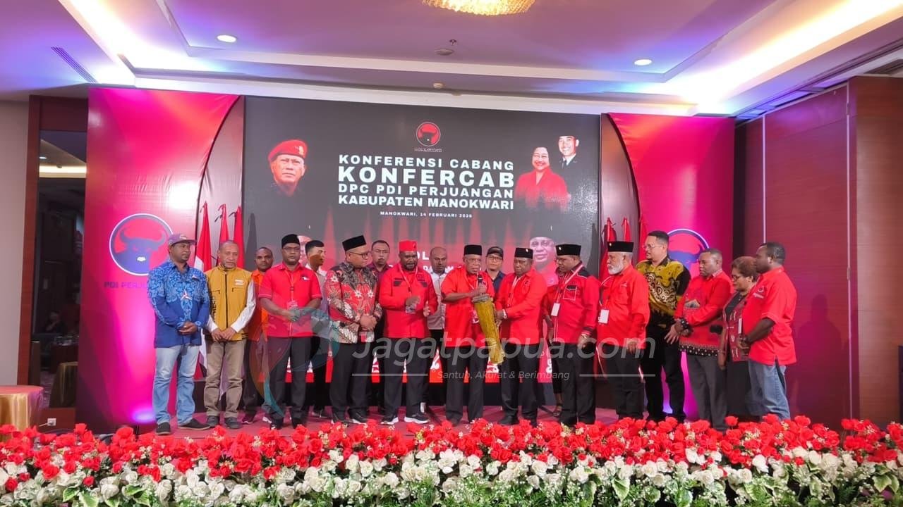 MANOKWARI,JAGATPAPUA.com – Ketua DPD PDI Perjuangan Papua Barat, Markus Waran, secara resmi membuka kegiatan Konferensi Cabang (Konfercab) Dewan Pimpinan Cabang (DPC) PDI Perjuangan Kabupaten Manokwari, yang berlangsung di Swiss-Belhotel Manokwari, Sabtu (14/2/2026).