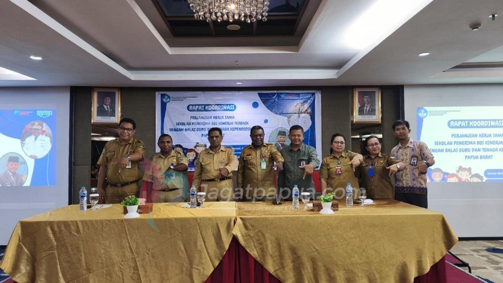 Dukungan itu ditandai dengan penandatanganan MoU anatara Pemda Manokwari dan GTK Papua Barat dalam Rapat Koordinasi perjanjian Kerjasama Sekolah Penerima BOS Kinerja terbaik, pada Selasa (15/7/2025) di Swiss-Belhotel Manokwari.