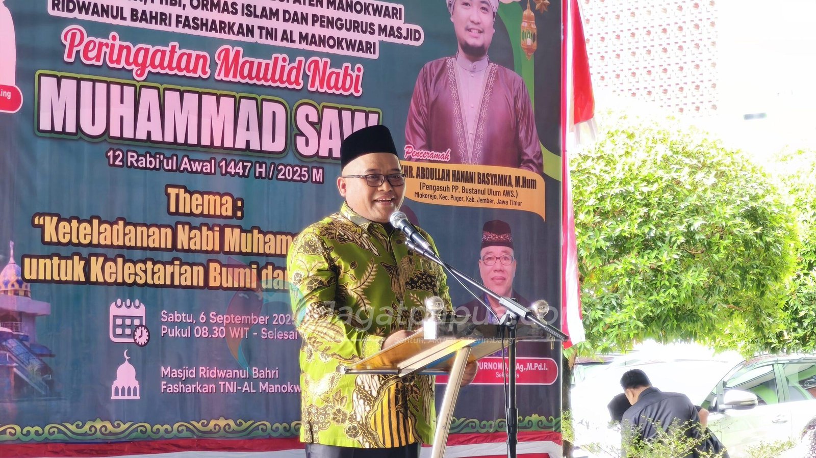 MANOKWARI, JAGATPAPUA.com – Wakil bupati Manokwari berharap Peringatan Maulid Nabi Muhammad SAW 1447 H/2025 M di Manokwari menjadi momentum penting untuk merefleksikan kembali nilai-nilai keteladanan Rasulullah SAW dalam membangun daerah, Masjid Fasharkan TNI AL, Sabtu(6/9/25).