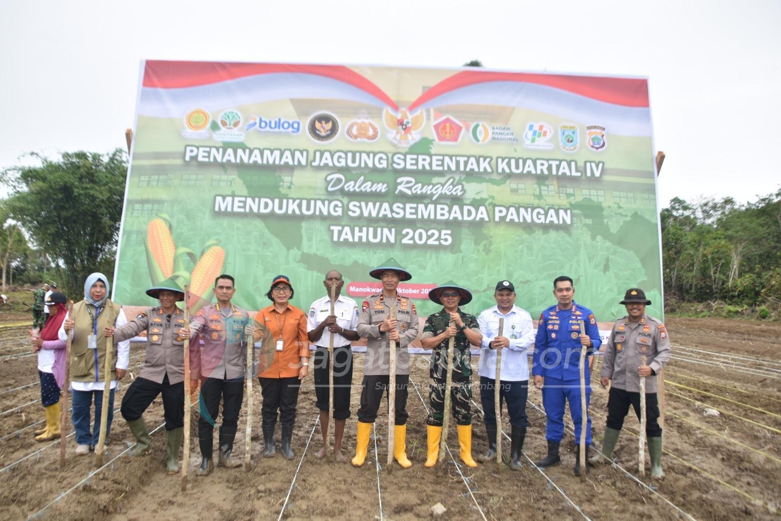 MANOKWARI , JAGATPAPUA.com – Polda Papua Barat menggelar Tanam Raya Jagung Serentak Kuartal IV Tahun 2025 bertempat di Kampung Macuan SP 5, Rabu (8/10/25).