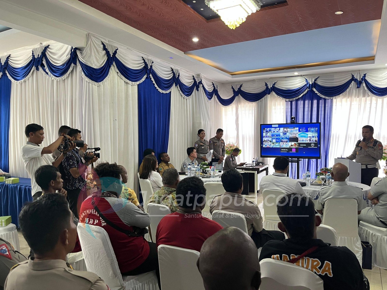 Kegiatan dipimpin oleh Dirlantas Polda Papua Barat serta turut dihadiri Kepala Bapenda Papua Barat, Kepala Jasa Raharja Papua Barat, Kepala UPT Samsat Manokwari, perwakilan Kepala BPJN Manokwari, para komunitas, serta perwakilan pengemudi ojek di Manokwari.